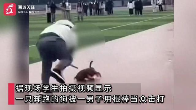 据现场学生拍摄的视频显示,一只奔跑的流浪狗被一名男子手持棍棒当众击打。暴力处置过程中,现场学生发出尖叫。