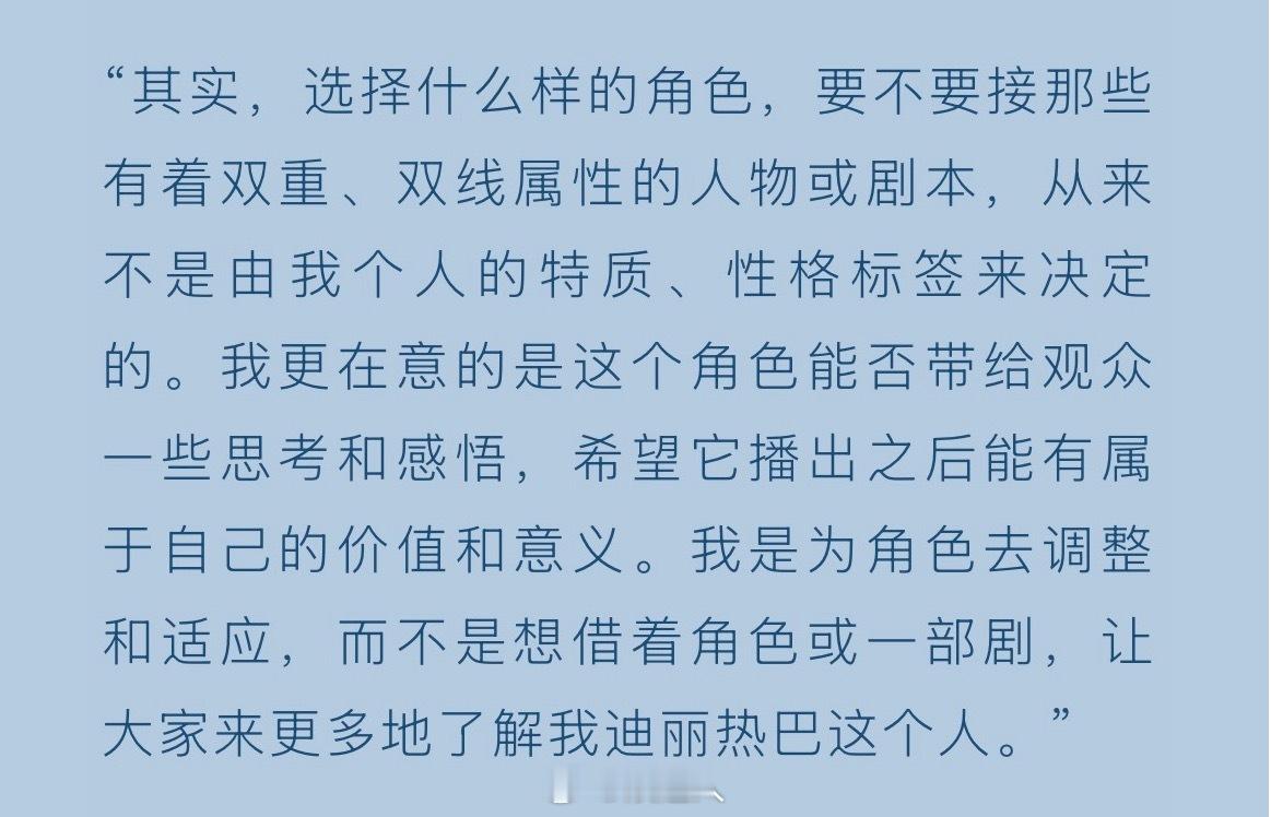 迪丽热巴谈接戏标准迪丽热巴希望角色都有自己的价值和意义 看到热巴在红秀采访里提到了她的接戏标准:“其实,选择什么样的角色,要不要接那些有着双重、双线属性的人物或剧本,从来不是由我个人的特质、性格标签来决定的。我更在意的是这个角色能否带给观众一些思考和感悟,希望它播出之后能有属于自己的价值和意义。我是为角色去调整和适应,而不是想借着角色或一部剧,让大家来更多地了解我迪丽热巴这个人。”迪丽热巴红秀油画公主大片