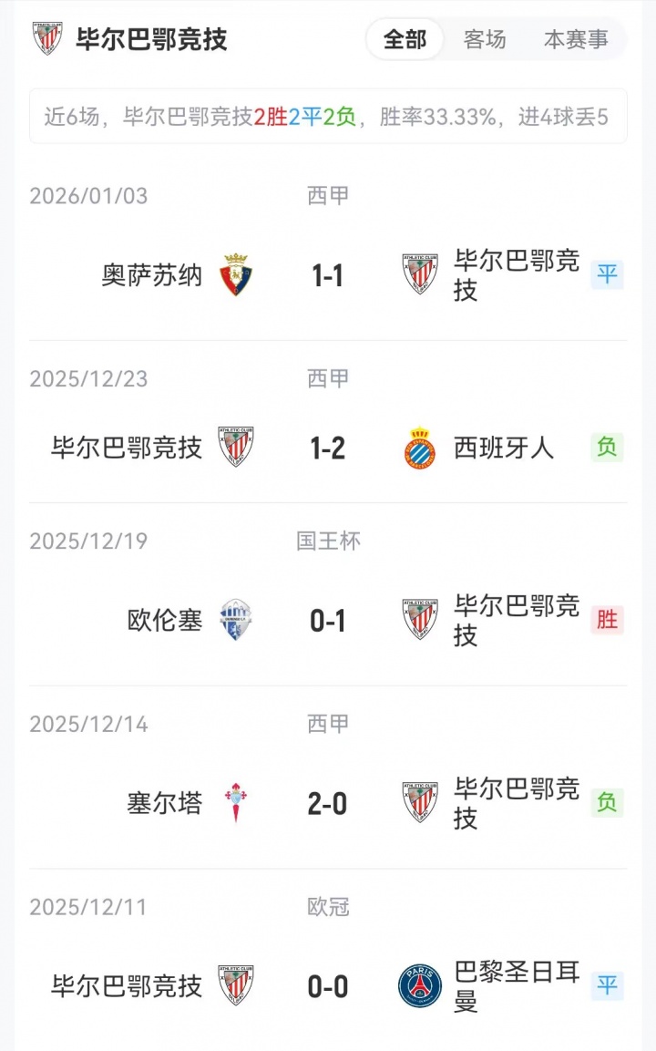 毕尔巴鄂竞技首发:1-乌奈·西蒙、3-维维安、4-艾托·帕雷德斯、12-阿雷索、19-博伊罗、8-桑塞特、18-豪雷吉萨尔、30-雷戈、7-贝伦格尔、9-伊纳基·威廉姆斯、23-纳瓦罗