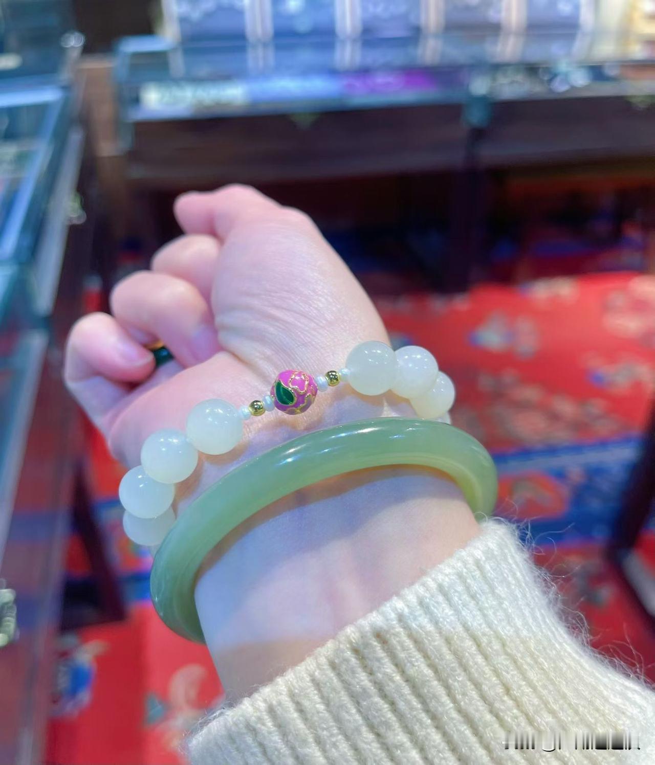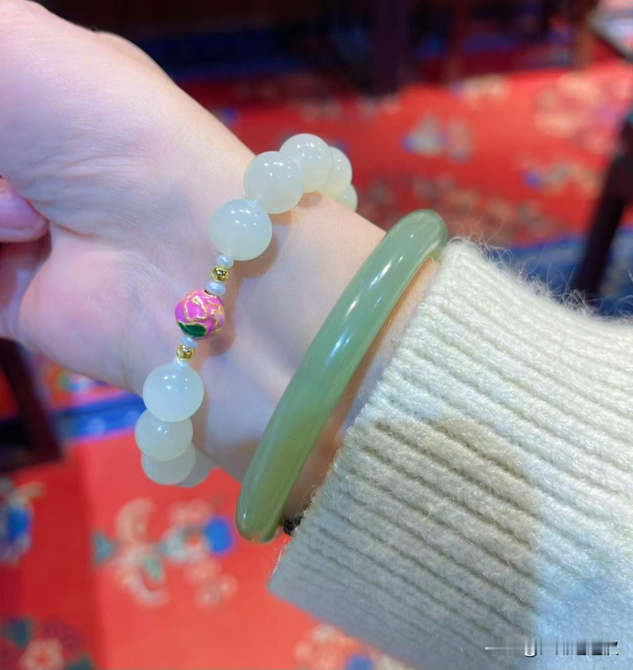请相信我们对料子的要求 55、56可佩戴的闭眼入 以前的料子以前的价格… 现在这个品质我也买不来了 年后恢复正常市面价格⚠️ 手串整个过灯品质 细腻度极好 不计成本,只为搭配着好看🎁晒图笔记大赛 54圈口手镯