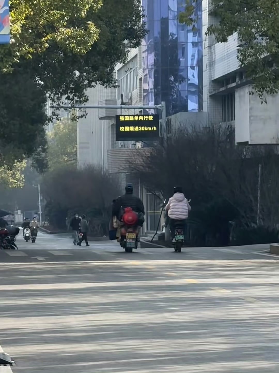 网友南华大学偶遇赖伟明,伟明就这么提着大包骑着小电动车就回母校了