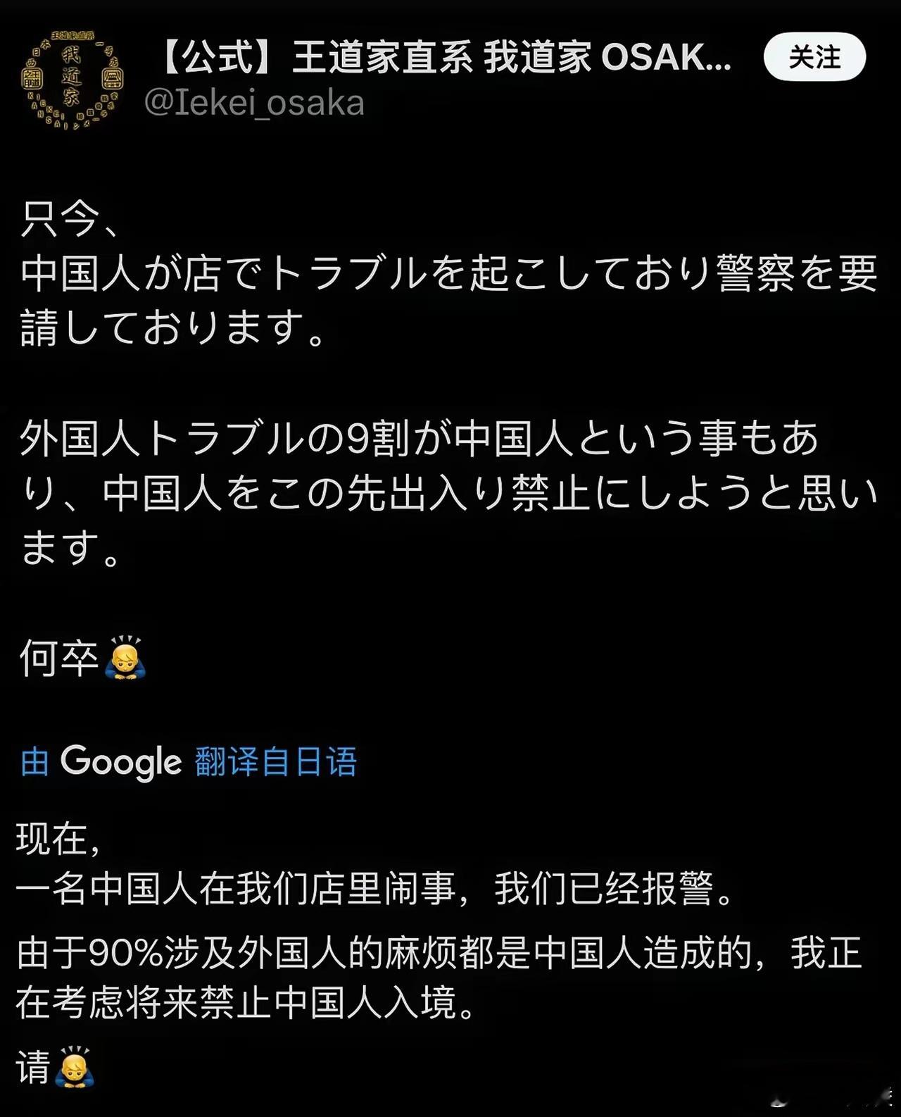 中国游客识破日拉面店阴阳菜单被禁入日本大阪这家拉面店太离谱了!日语菜单和中英韩菜单同品价差60%,中国游客看懂汉字识破宰客套路,店家不认错反而倒打一耙,说中国人“闹事”还禁止入内。搞价格歧视还搞国籍封杀,这波操作又蠢又坏,旅游消费谁愿当冤大头?