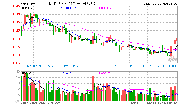 1月8日,科创生物医药ETF(588250)开盘跌0.50%,报1.186元。科创生物医药ETF(588250)重仓股方面,联影医疗开盘跌0.60%,百济神州涨1.64%,百利天恒涨0.35%,惠泰医疗跌0.02%,艾力斯涨0.50%,君实生物涨0.00%,泽璟制药涨0.76%,荣昌生物涨0.72%,博瑞医药跌0.35%,华大智造跌0.62%。