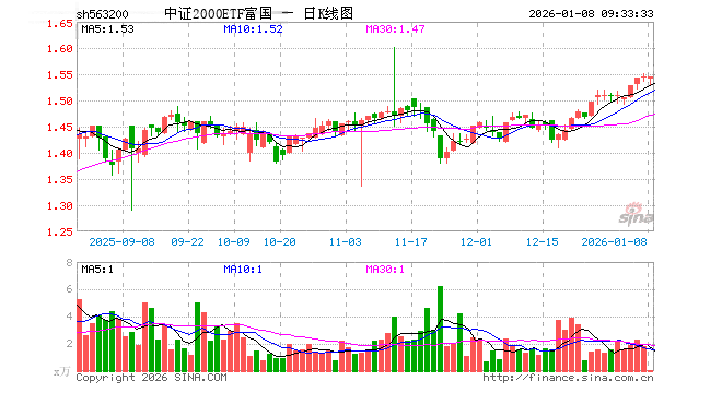 中证2000ETF富国(563200)业绩比较基准为中证2000指数收益率,管理人为富国基金管理有限公司,基金经理为牛志冬,成立(2023-09-28)以来回报为54.95%,近一个月回报为6.43%。