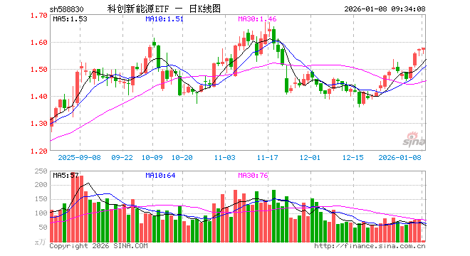 1月8日,科创新能源ETF(588830)开盘跌0.25%,报1.568元。科创新能源ETF(588830)重仓股方面,天合光能开盘涨0.28%,晶科能源涨0.00%,天奈科技跌0.27%,阿特斯跌1.76%,大全能源跌0.92%,厦钨新能跌0.78%,容百科技涨0.03%,孚能科技跌2.25%,聚和材料涨1.04%,嘉元科技跌0.99%。