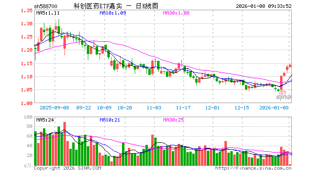 1月8日,科创医药ETF嘉实(588700)开盘跌0.09%,报1.134元。科创医药ETF嘉实(588700)重仓股方面,联影医疗开盘跌0.60%,百济神州涨1.64%,百利天恒涨0.35%,惠泰医疗跌0.02%,艾力斯涨0.50%,君实生物涨0.00%,泽璟制药涨0.76%,荣昌生物涨0.72%,博瑞医药跌0.35%,华大智造跌0.62%。