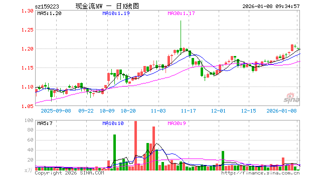 1月8日,现金流ETF永赢(159223)开盘跌0.33%,报1.200元。现金流ETF永赢(159223)重仓股方面,中国海油开盘跌0.49%,上汽集团涨0.65%,五粮液跌0.13%,格力电器跌0.02%,洛阳钼业跌1.91%,陕西煤业涨0.67%,中国铝业跌2.49%,上海电气跌0.44%,正泰电器涨0.92%,厦门国贸跌1.10%。