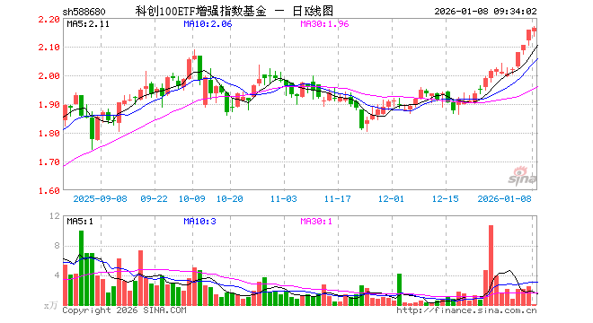 1月8日,科创100ETF增强指数基金(588680)开盘跌0.19%,报2.153元。科创100ETF增强指数基金(588680)重仓股方面,华虹公司开盘跌1.57%,百济神州涨1.64%,睿创微纳跌1.25%,翱捷科技跌0.61%,道通科技跌0.38%,源杰科技跌1.36%,东芯股份跌0.25%,安集科技跌3.01%,铂力特跌1.04%,中科飞测涨0.28%。