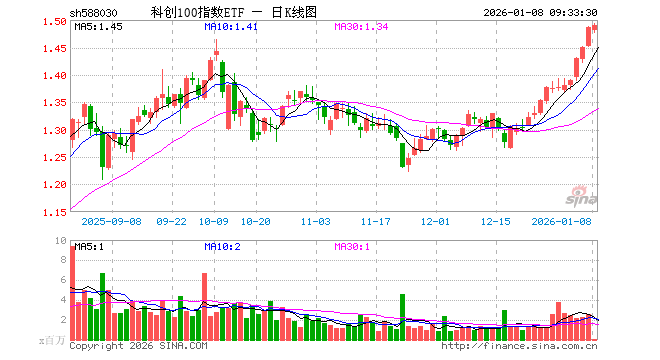 1月8日,科创100指数ETF(588030)开盘跌0.40%,报1.481元。科创100指数ETF(588030)重仓股方面,华虹公司开盘跌1.57%,百济神州涨1.64%,东芯股份跌0.25%,睿创微纳跌1.25%,翱捷科技跌0.61%,安集科技跌3.01%,中科飞测涨0.28%,源杰科技跌1.36%,芯源微涨4.83%,云天励飞涨0.63%。