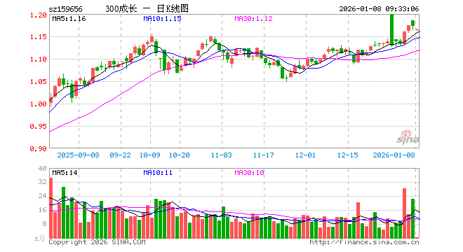 1月8日,300成长ETF(159656)开盘跌0.68%,报1.164元。300成长ETF(159656)重仓股方面,宁德时代开盘跌0.81%,贵州茅台跌0.00%,紫金矿业跌1.42%,新易盛跌1.16%,中际旭创跌1.37%,立讯精密跌0.92%,恒瑞医药涨1.80%,比亚迪跌0.41%,药明康德涨0.79%,五粮液跌0.13%。