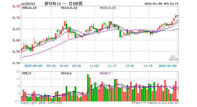1月8日,新材料ETF基金(159763)开盘涨0.28%,报0.709元。新材料ETF基金(159763)重仓股方面,宁德时代开盘跌0.81%,北方华创涨0.00%,万华化学跌0.01%,隆基绿能跌0.64%,华友钴业跌0.74%,三环集团涨0.32%,通威股份跌1.15%,三安光电跌0.95%,天赐材料跌0.99%,国轩高科跌1.02%。