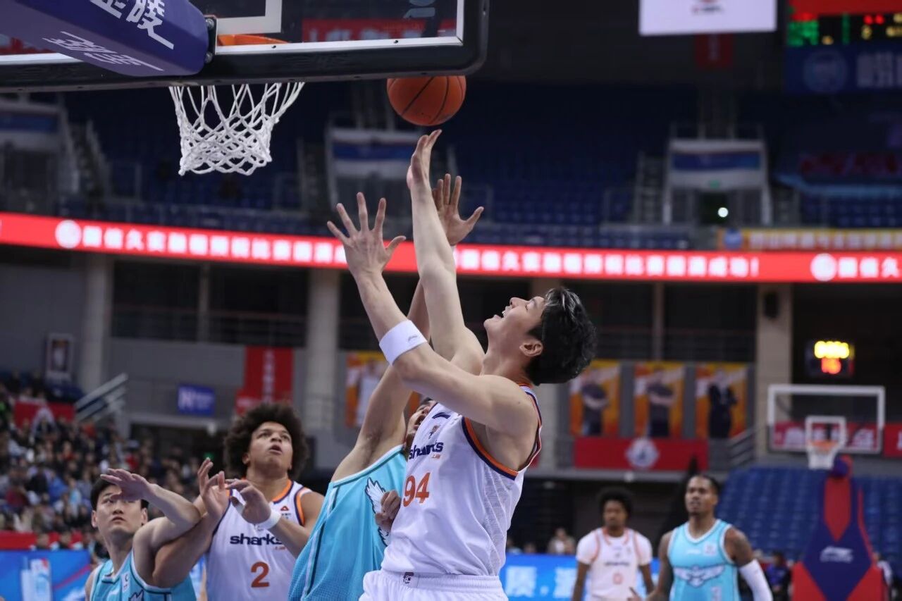 配文:在昨晚CBA第十二轮一场焦点战中,上海久事男篮客场以90比73大胜青岛队,豪取八连胜,并以10胜2负的战绩暂时登顶联赛积分榜。昨晚首节33比8的悬殊比分,早早让比赛失去悬念,也让大鲨鱼的强大实力展露无遗。这场胜利,也让上海球迷开始热议:大鲨鱼能否重现上赛季的十六连胜辉煌?
