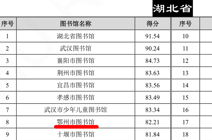《报告》从基础实力、网站影响力、新媒体影响力、社会影响力、学术影响力五大维度进行全面评估。鄂州市图书馆的入选与排名提升,是对其过去一年持续推进服务体系现代化转型、深耕本地文化服务、积极融入全省公共文化发展格局所取得成绩的集中肯定。