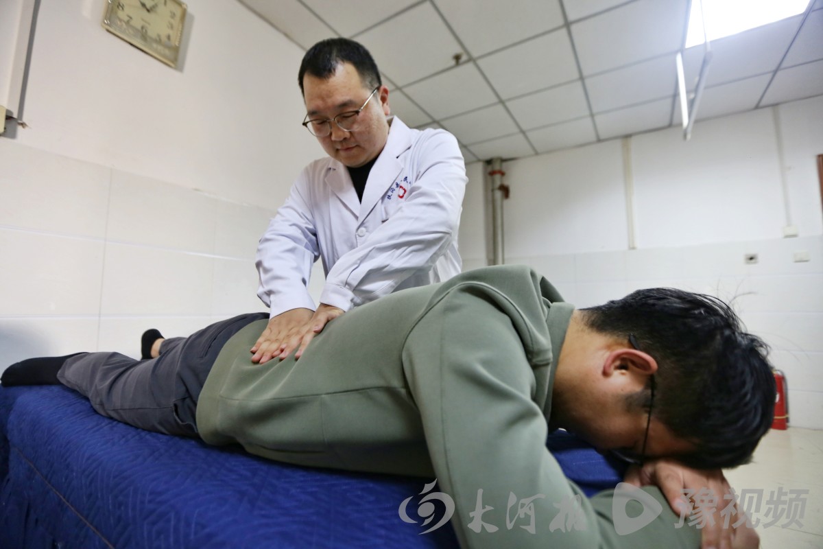 王凯飞为患者做推拿治疗
