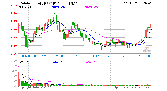 1月8日,截止午间收盘,科创AIETF鹏华(589090)涨1.98%,报1.131元,成交额1265.43万元。科创AIETF鹏华(589090)重仓股方面,寒武纪截止午盘涨4.66%,澜起科技跌0.82%,芯原股份涨4.41%,金山办公涨0.77%,石头科技涨0.98%,恒玄科技涨1.34%,晶晨股份涨2.45%,道通科技涨0.63%,乐鑫科技涨1.48%,云天励飞涨2.35%。