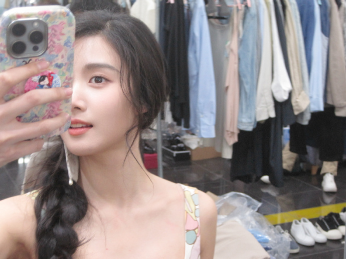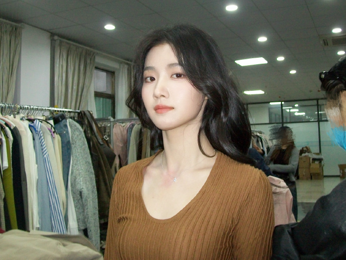 CCD 镜头捕捉到卢昱晓的定妆时刻,低清画质掩盖瑕疵,却放大了她五官的和谐比例,浅金色提亮的下眼睑在复古光影中若隐若现。随意抿嘴的小动作,尽显娇憨气质。在定妆时被抓拍的胡羞卢昱晓CCD镜头下的卢昱晓