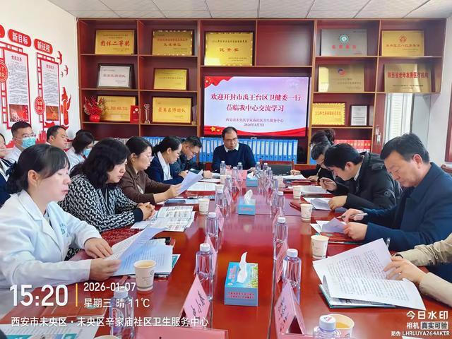 春潮涌动启新程,交流互鉴共提升。2026年1月7日,河南省开封市卫健委党组成员、副主任王怀军,登封市卫健委基层指导科科长郭永涛带领该市禹王台区卫健委骨干人员及下辖禹王台区社区卫生服务中心成员一行,来到西安市未央区辛家庙社区卫生服务中心开展参访交流活动。未央区卫健局党委委员、副局长刘胜敏,基层卫生健康科负责人郭婷婷及中心领导班子成员陪同参观。此次交流围绕基层医疗卫生服务多项重点工作展开深入探讨,互学互鉴、共促发展,为推动基层医疗服务高质量发展凝聚共识、共寻路径。