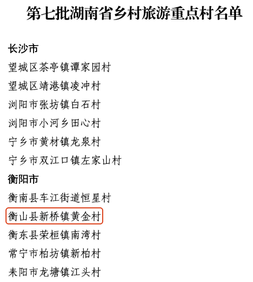 衡山县新桥镇黄金村入选第七批湖南省乡村旅游重点村名单!