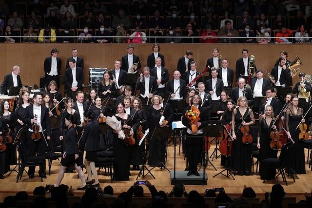 当晚7时30分,灯光渐暗,身着黑色燕尾服的罗雷尔快步登台。这位指挥家没有过多的寒暄,抬手间便展现出令人惊叹的掌控力。他的指挥风格干净利落,没有花哨的肢体语言,每一个手势都精准传递着音乐的内核。他指挥《艾格蒙特》序曲时,手臂挥出有力的弧线与管弦乐的雄浑相得益彰,将英雄主义的激情诠释得淋漓尽致;转向舒伯特《b小调第八“未完成”交响曲》时,他的手势骤然轻柔,指尖的细微颤动牵引着弦乐声部,让旋律流淌出淡淡的忧伤与怅惘,却丝毫不见拖沓之感。这位杰出的指挥家对节奏的把控相当精准且又恰到好处,《闲聊波尔卡》中,他以短促明快的点拍带动乐团,不同声部之间相互呼应着,完美复刻人们“叽叽喳喳”的闲聊场景;而在《蓝色多瑙河》的演奏中,乐曲行云流水,其中出现的rubato(弹性速度)的运用充满了他的个性风格,令人陶醉。