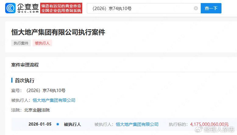 基于上述违法事实,证监会对恒大地产作出责令改正、警告并罚款41.75亿元的处罚,对时任恒大地产董事长、实际控制人的许家印处以顶格4700万元罚款,并采取终身证券市场禁入措施。此次北京金融法院的强制执行,正是对该行政处罚决定的落地执行。