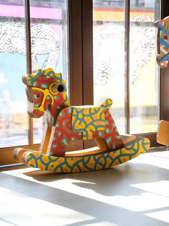 上到三楼,进门就被一匹粉红色的马逗乐了——咧着大嘴,眼睛瞪得圆溜溜的。