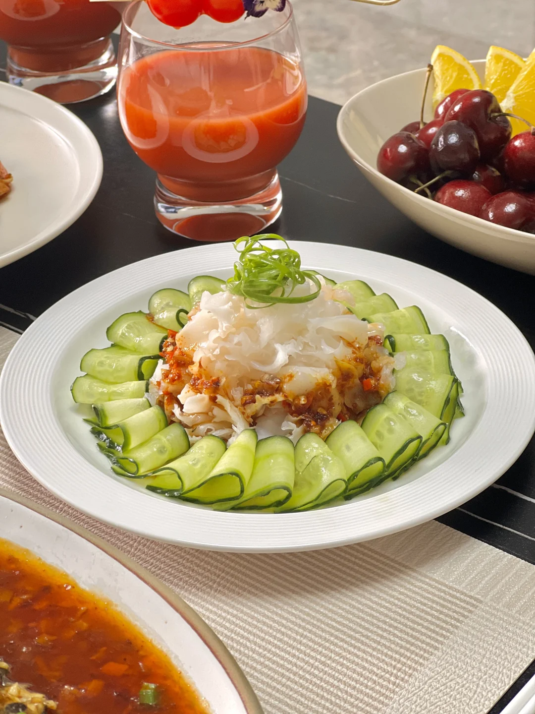 跟隋大厨学做的豆瓣鱼,果然好吃啊,酱汁味道很浓郁,爱吃辣的朋友们拿这个汤汁拌饭肯定香[派对R]偶尔在超市看到绣球菌,简单的凉拌一下就很好吃啦~ 【豆瓣鱼】 【蒜辣虾】 【荷兰豆炒腊肠】 【凉拌绣球菌】