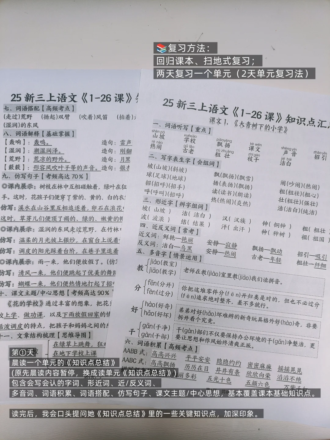 4️⃣第②天早上,继续晨读第一单元的《知识点总结》,巩固一下。