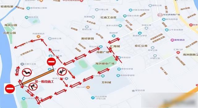 西岸北路往返海兴路方向双向封闭,需绕行东岸西路及沙源工业区方向等道路。请过往车辆按现场交通指示标志减速慢行或提前选择绕道行驶,请广大驾驶员相互知照,提前选择行车路线。
