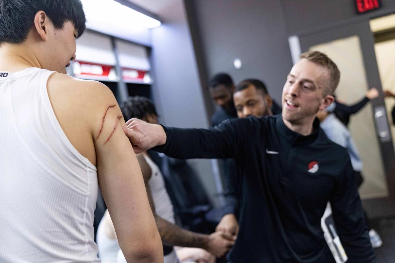 首次进常规轮换,韩乔生为小杨鸣不平。 今天杨瀚森的数据不是很出色,但是得到了教练组的认可。小杨在和亚当斯的对抗中,胳膊被划开两道口子。杨瀚森工作室在赛后晒血痕,并配文:“这是伤痕,也是成长路上的拼搏勋章。” 小杨最近连续7场比赛获得出场机会,并且今天是出场时间最长的一次,打了16分钟31秒,正负值+2。 大嘴韩乔生说,裁判要是不瞎吹,小杨还能多打一会儿。 今天小杨被裁判重点照顾了,一度连续被吹两个犯规,他一共2次失误和5次犯规。我认为其中和亚当斯搅在一次倒地和防守阿门那个,不应该被吹犯规。 下一场还是主场打火箭,会两胜火箭吗?我们拭目以待。