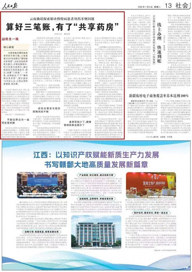 为探索解决慢特病患者用药不便问题,云南曲靖2025年初推出“慢特病共享药房”,以区级医院药房为重点,乡镇设服务站、村卫生室为延伸点,通过信息化手段实现处方、药品、结算“三贯通”。一年来,曲靖建成17个“慢特病共享药房”,累计接诊18万余人次,让群众用药更便捷、更实惠。