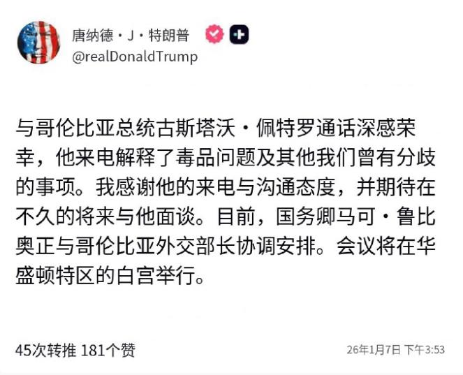 哥伦比亚总统给全球上了一课!4号还在喊话美军放马过来,7号已致电白宫求饶。 古斯塔沃·佩特罗,可谓是身段灵活的实践者。短短三天内,他从高调对抗白宫,到主动致电白宫,用实际行动给其他国家上了一课。 咱先说说1月4号那出硬戏,当时佩特罗在社交媒体上直接跟特朗普叫板,放话“你想把我关进监狱就试试,想让我穿橙色囚服就放马过来,哥伦比亚人民会走上街头捍卫我”。 这话一出来,立马传遍全球,不少人都觉得这是拉美国家敢跟美国霸权正面叫板的硬气时刻。 佩特罗还特意放了张地图,标注美军在太平洋某处秘密轰炸的位置,说这行动害死了平民,摆明了是要把舆论焦点从自己身上移开,反击白宫之前说他“跟毒枭勾结”的指控。 毕竟特朗普之前多次点名骂他,还威胁要对哥伦比亚动武,说动武这事儿“听起来不错”,佩特罗这波硬刚,也算给自个儿和本国百姓挣点气势。 可能有人会问,佩特罗咋就敢这么硬气?这跟他的背景有点关系,他是哥伦比亚历史上首位左翼总统,年轻时还参加过游击队,后来转型搞议会斗争,骨子里就带着反强权的劲儿。 之前在巴以问题、移民问题上,他就屡次跟美国唱反调,去年9月在联合国大会上公开骂美国是“北方统治者”,还去纽约街头参加支持巴勒斯坦的示威,气得美国直接吊销了他的签证,结果他凭着意大利双重国籍,照样能去美国,还嘴硬说“我不需要美国签证”。 那时候的他,确实把“硬骨头”人设立得很稳,也靠着这份敢对抗的态度,赢得了不少国内民众支持。 可谁能想到,才过了72小时,1月7号剧情就彻底反转了,特朗普先发文说,很荣幸跟佩特罗通了15分钟电话,对方主动解释了毒品问题和双方的其他分歧,还约定近期在白宫会面。 紧接着佩特罗也表态,说通话是建设性的,还提议恢复两国元首和外交部门的直接沟通机制,甚至在当天组织的“捍卫国家主权”示威上,都没再放狠话,转而强调自己的禁毒政策比强制铲除更有效。 一边是前几天还喊着“放马过来”,一边是主动致电释好,这转变快得让人咋舌,不少人觉得这是“求饶”,其实说白了,都是现实逼的,佩特罗不是不想硬,是根本硬不下去。 哥伦比亚跟美国的关系,从来都不是对等的,美国是哥伦比亚第一大贸易伙伴,两国之前就因为移民遣返、毒品问题闹过多次矛盾,特朗普之前就威胁要对哥伦比亚加征25%关税,还说要提高到50%,甚至停止所有资金援助。 哥伦比亚经济本来就依赖对美出口,一旦真的加征关税,国内经济就得受重创,老百姓的日子没法过,佩特罗这个总统位置也坐不稳。 而且这次特朗普的威胁不是空穴来风,1月6号,哥伦比亚外交部刚给美国驻哥大使馆发了抗议照会,国防部还呼吁全国维护稳定,可见当时局势已经很紧张了。 佩特罗心里清楚,美国真要动起手来,哥伦比亚根本扛不住,拉美国家跟美国硬刚的先例不是没有,但大多没好结果,要么经济被制裁搞垮,要么国内局势动荡。 佩特罗之前硬气,是为了争取舆论和国内支持,可真到了要摊牌的时候,只能选务实的路——与其跟大国拼个鱼死网破,不如各退一步谈利益。 这场反转背后,其实是双方的利益妥协,哥伦比亚的地理位置和影响力很重要,不能真把关系搞断。 而哥伦比亚则需要美国放宽制裁、恢复援助,保住国内经济稳定。 佩特罗主动致电解释,不是求饶,是给双方一个台阶下,既没丢太多面子,又能保住本国核心利益。 他组织示威的时候还能喊着“捍卫主权”,转头就跟特朗普谈会面,这份分寸感,其实就是小国在大国博弈里的生存技巧。 有人觉得佩特罗前后矛盾,没骨气,可换个角度想,作为一国总统,他首要任务是保住国家和人民的利益,不是逞口舌之快。 口号喊得再响亮,要是真让国家陷入战乱、经济崩溃,最后受苦的还是老百姓。 佩特罗年轻时敢当游击队反抗强权,当了总统却懂得灵活变通,这不是软弱,是认清现实后的务实选择。 毕竟在绝对的实力差距面前,硬刚只能是自寻死路,懂得在合适的时候转弯,才能为国家争取更多生存空间。 这事儿也给其他小国提了个醒,跟大国打交道,别被所谓的“骨气”绑架,国家之间没有永远的对抗,只有永远的利益。 能审时度势,根据自身实力调整策略,不纠结于一时的面子,才能在复杂的国际局势里站稳脚跟。 佩特罗这三天的操作,看似反转狗血,实则是最聪明的生存之道——口号能鼓舞士气,但灵活务实才能守住根本。