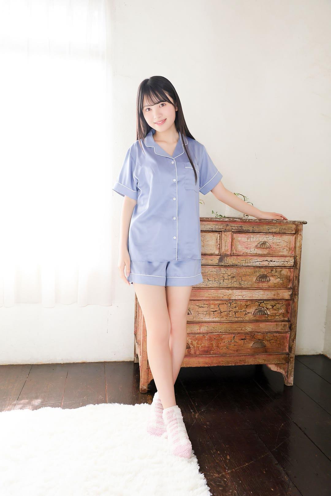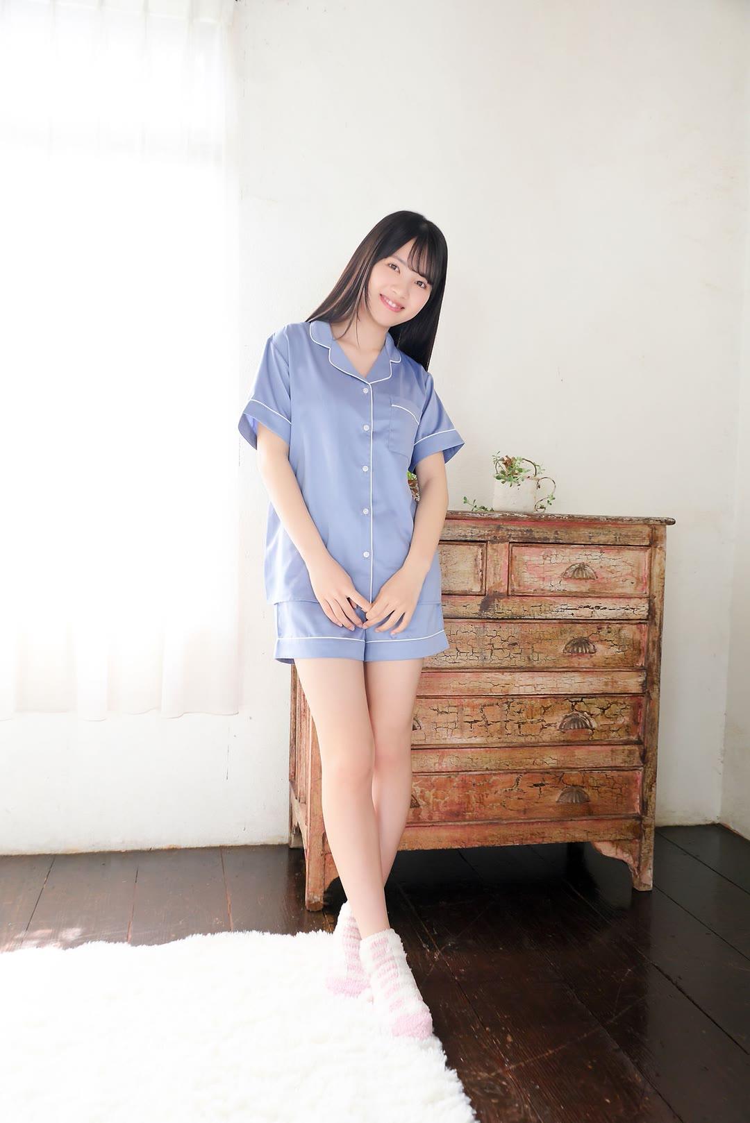 清新夏日穿搭,浅蓝色睡衣搭配粉色袜子,简约自然,居家舒适。