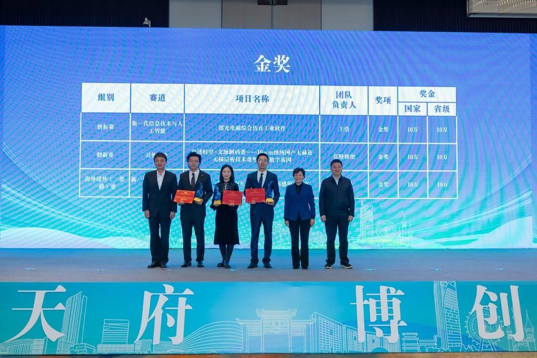 会议现场,通报表扬了第三届全国博士后创新创业大赛组织工作突出单位,并为获奖项目颁奖。其中,金奖项目“摇光电磁综合仿真工业软件”、银奖项目“擘海氢蓝-海水无淡化原位直接电解制氢”还进行了现场路演展示。此外,四川大学、天府绛溪实验室、泸州老窖集团有限公司等10家单位与博士(后)代表进行入站(职)现场签约。