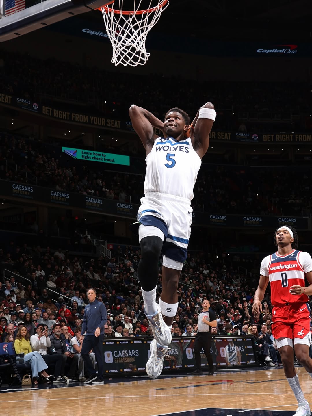 本赛季至今,安东尼-爱德华兹场均可以得到29.3分5.0篮板3.6助攻1.4抢断0.8盖帽。