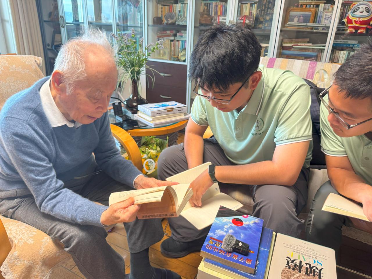 何祚庥老院士与华中科技大学学子亲切交流。 2025年8月24日,华中科技大学的学子们拜访了何老。何祚庥老院士对这些学生们说,他在时代的浪潮中有七个字铭刻心中,这七个字是“用科学服务国家”。 何老打开《量子复合场论的哲学思考》,为来访的学生们评讲一些重点内容。何老对大家谦虚地说:“这本书里没有标准答案,只有我一辈子的思考。你们读的时候,要多问为什么。” 对学生们而言,这一趟拜访何祚庥老院士,对他们今后的学习是大有裨益。听了何老院士的一番话,学生们心中也有数,科学精神的内核就在此间。待到学有所成之日,为科学奋斗,为国奋斗。