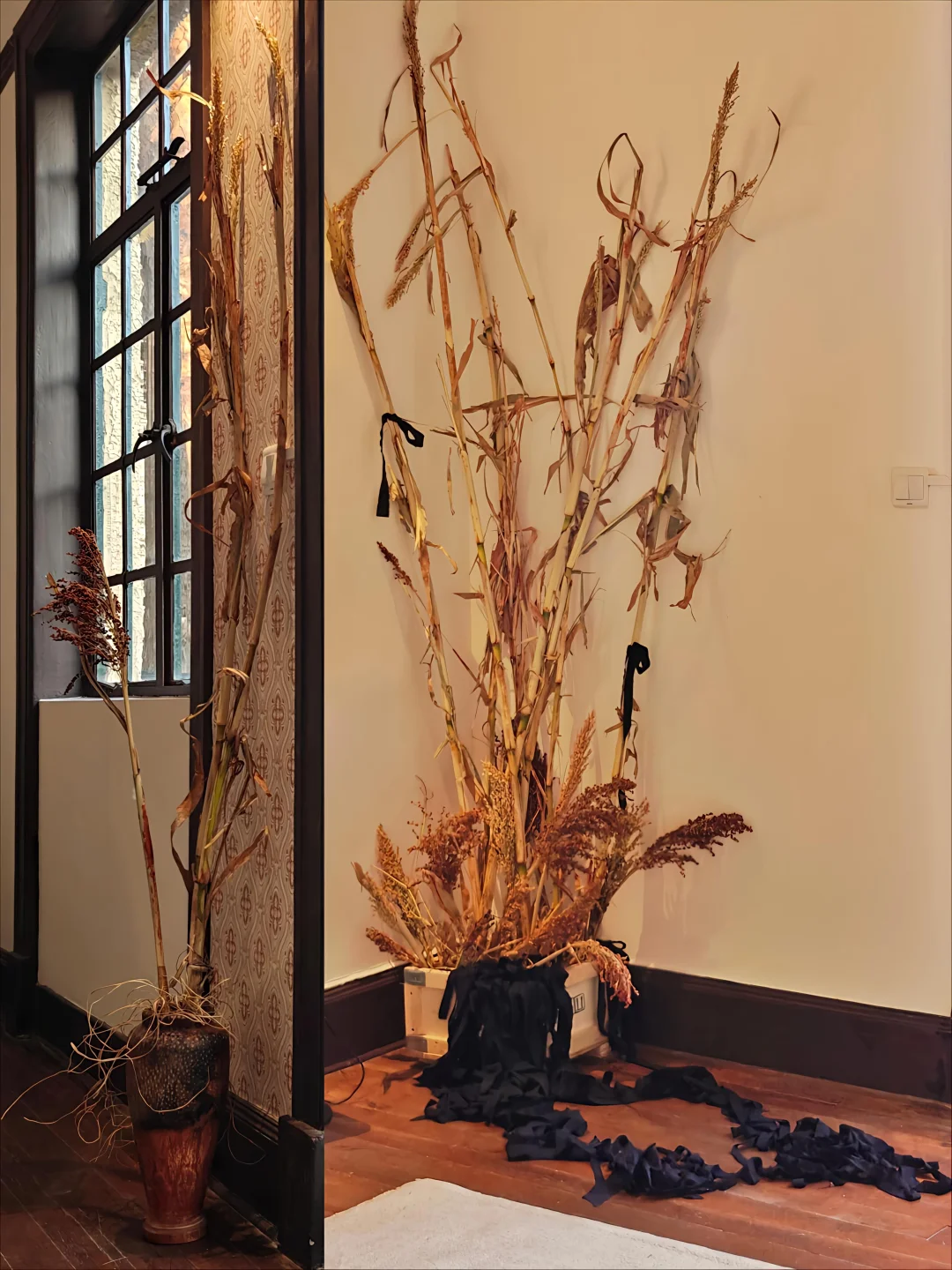 《鲸歌》在地文化×当代艺术群展 📅1.21🔚 ⏰周二~周六15:00-19:00 📍Interlude间奏空间 五原路262弄2号楼主楼2F 🎨文化如同鲸歌,在时间中流动,不被潮流束缚,却经得起咀嚼 🎨策展以鲸鱼缓慢、古老、守旧甚至孤独的特性为隐喻,探讨文化的连接、循环与珍视 ⛰️聚焦上海金山区拙朴而珍贵的本土艺术:逃脱学院派框架,不使用现代化材料,而是基于日升月落、手上技艺和口口相传的故事 🐳第一幕:鲸落 一鲸落,万物生 死亡不是终结,而是滋养新生的开始 织物、竹编、器物等作品来源于自然凋零之物 枯树枝、落叶、残败的瓜果蔬菜经过民间艺术家之手 衰败事物被转化为温暖内心的美好之物 朱泾镇新泾村村民提供的木桩、竹席、土布等 在展览中重新苏醒,成为当代表达 🐳第二幕:Whale's talk 两只鲸鱼的对话,发生在生命之未与之初 象征人类终其一生寻找同频之人,即使交集短暂 土布、摄影作品、雕塑作品和稻草装置组合成仪式感场景 生命在此被描述为一段段寻找共鸣的“间奏” 🐳第三幕:鲸歌 鲸歌是地球上蕞古老、蕞深邃的低频共振 农民画、薄纱和稻草装置,结合艺术光影和聆听体验 鲸歌的传唱如同文化的流动 从金山到上海,再到太平洋 口口相传的简朴方式比互联网更真实 ⛰️结尾的共创项目用了“金山”的谐音梗,听导览小姐姐讲了这个项目的来由和形式,很有意思 👨‍🎨 陈木云 | 上海金山区农民画家,作品以鸡鸭鱼为题材,色彩富丽,带有装饰性。代表作《网中鱼》 Yearko陈俍俍忻 | 艺术家和设计师,关注味觉、记忆与情绪,《风味缓存》使用蔬果材料探讨感官的短暂与延续 Lexiong Ying | 跨学科艺术家,作品关注存在性困境、情绪流动和技术饱和,媒介包括3D打印雕塑、实验摄影等 邢惠欣 | 设计师兼雕塑家,探索玻璃、陶瓷和纺织品的物质性,研究陶土和玻璃的融合 👉其做过好几次间奏的展览推荐,但还是第一次来到空间所在的老洋房,到了才发现原来就在以前常来的视平线画廊的地点。 🎵间奏的意思取自“乐章间的呼吸”,策展理念是让新旧、传统与当代对话,空间本身成为延续的艺术。追求光、真、爱,强调传承和分享。 💗关注我,每天带你免费看展💗