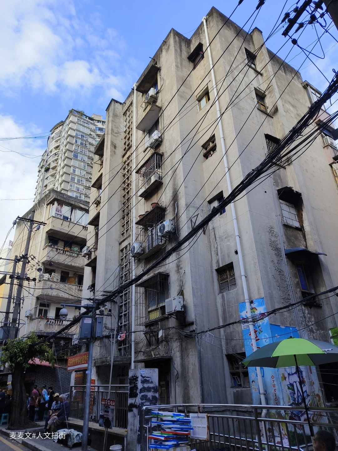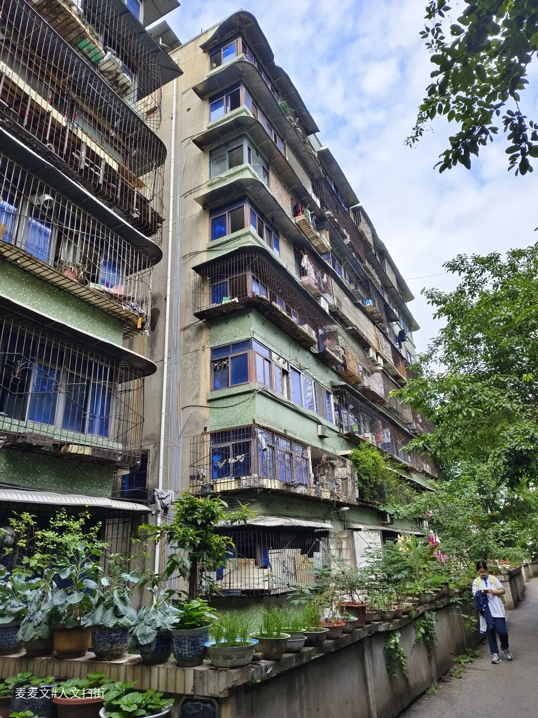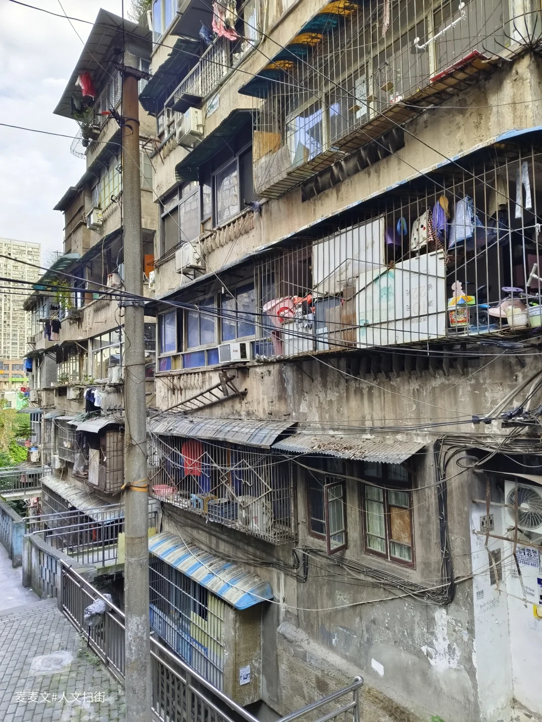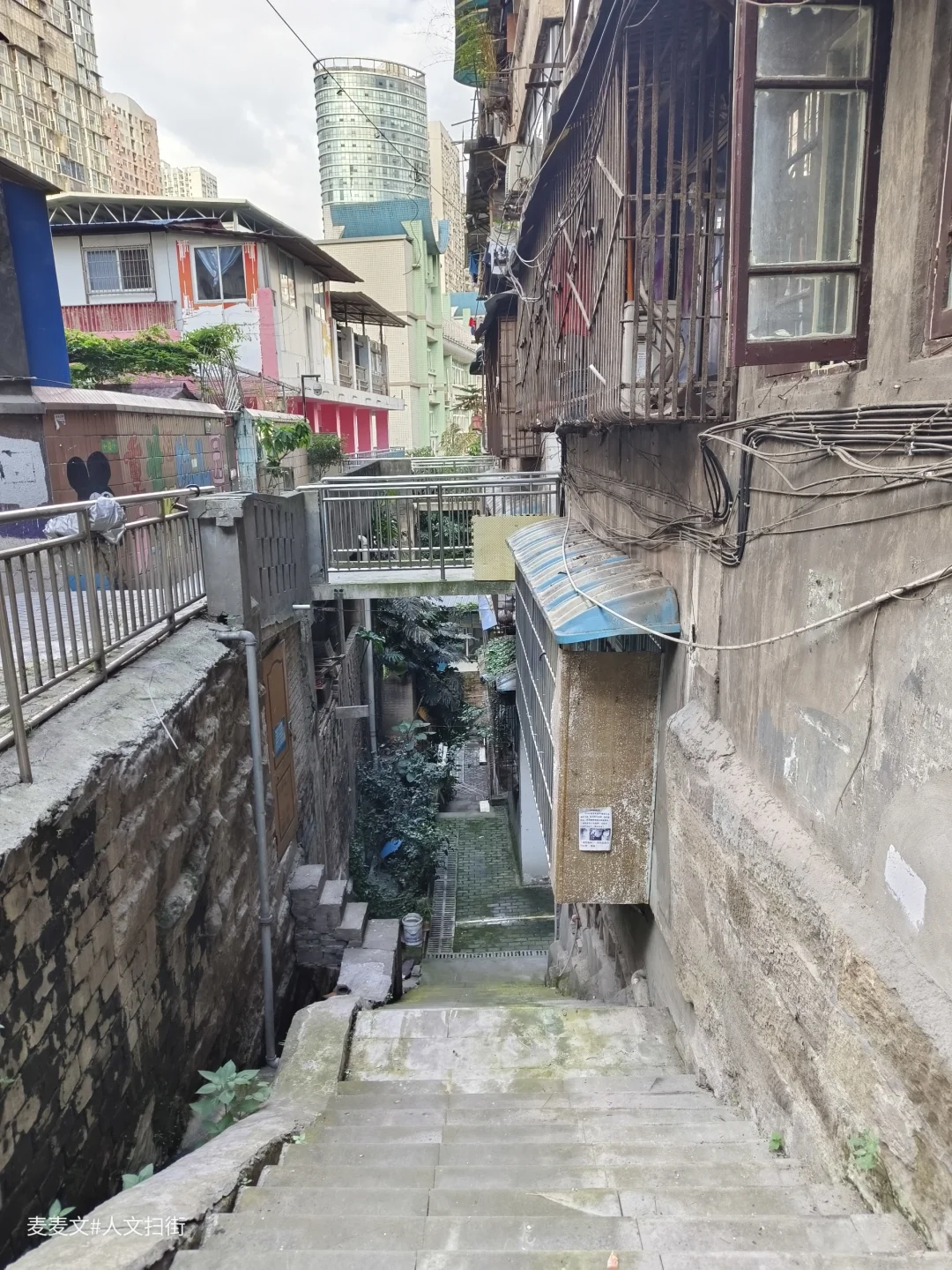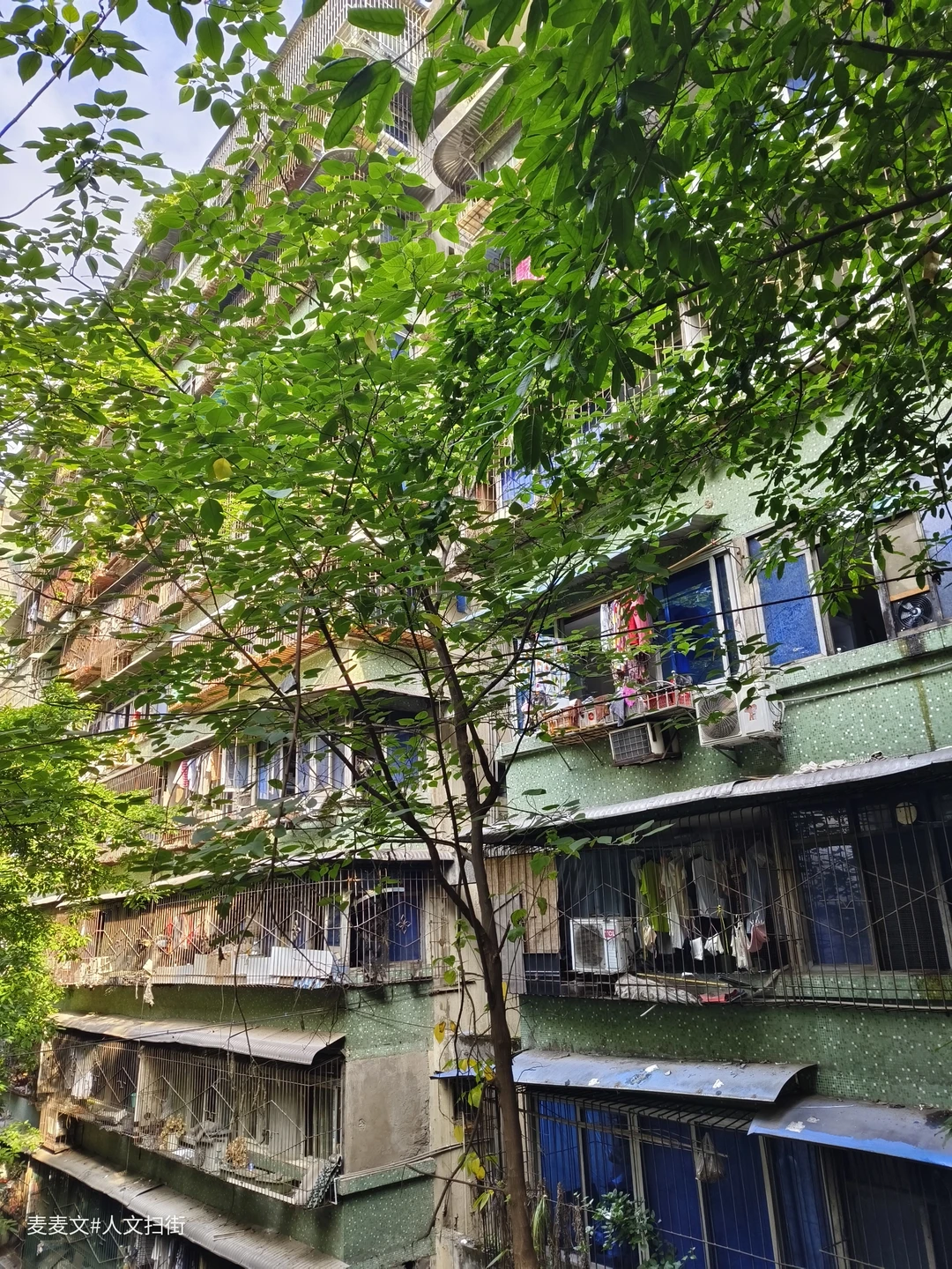 藏在重庆江北繁华观音桥商圈背后的建东二村,是老重庆的缩影。绿色马赛克外墙砖的老式居民楼,斑驳却充满年代感,阳台上晾晒的衣物随风轻摆,市井气息扑面而来。 这里没有商圈的喧嚣,却藏着最接地气的生活。楼下小面馆热气腾腾,小巷子里的足疗店价格便宜仅需20元/次。老人们坐在楼前摆龙门阵、打牌,时光在这里慢了下来。