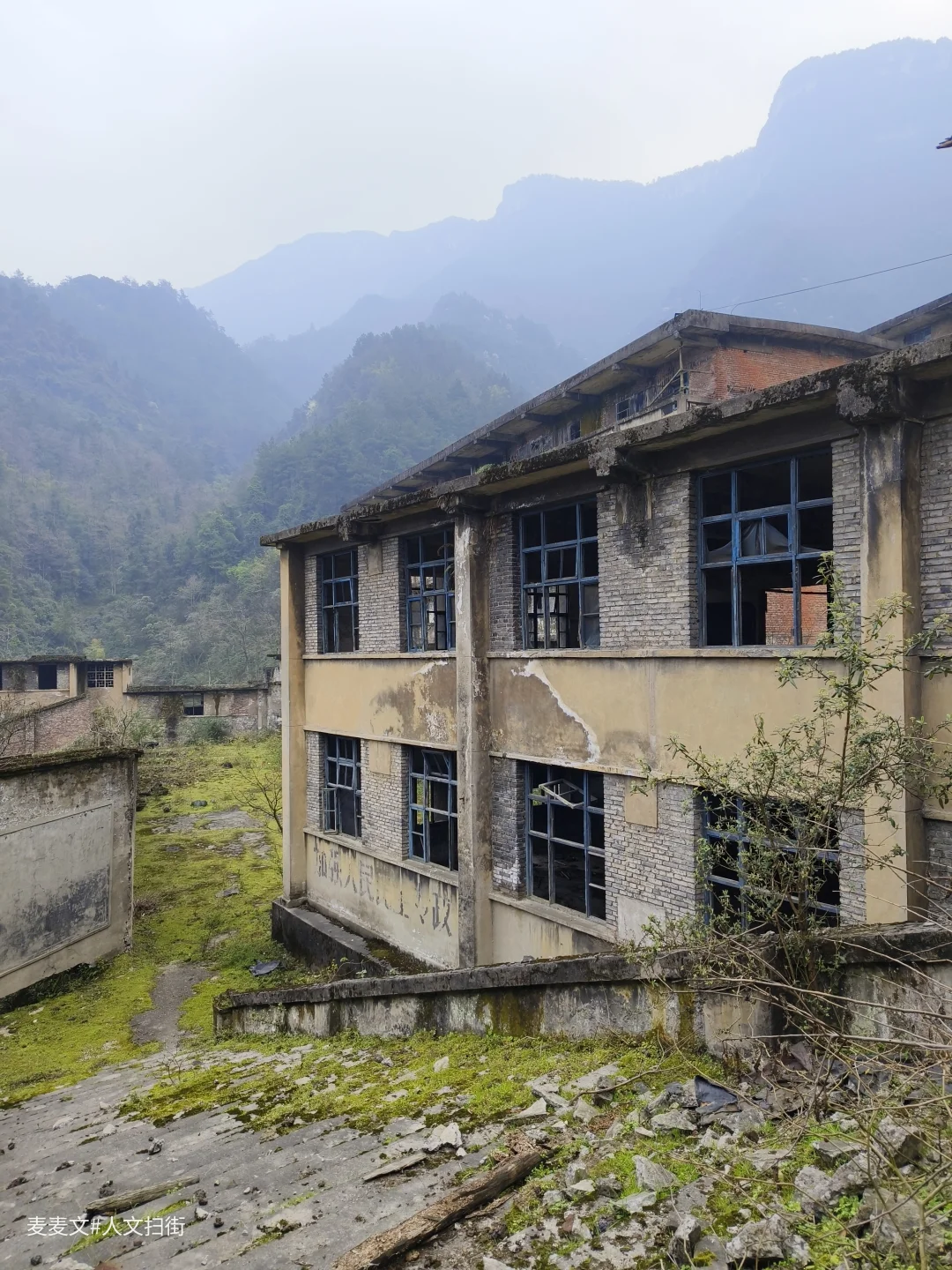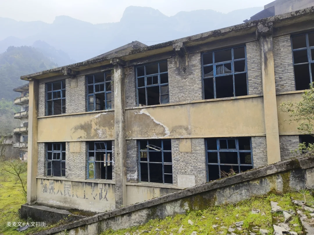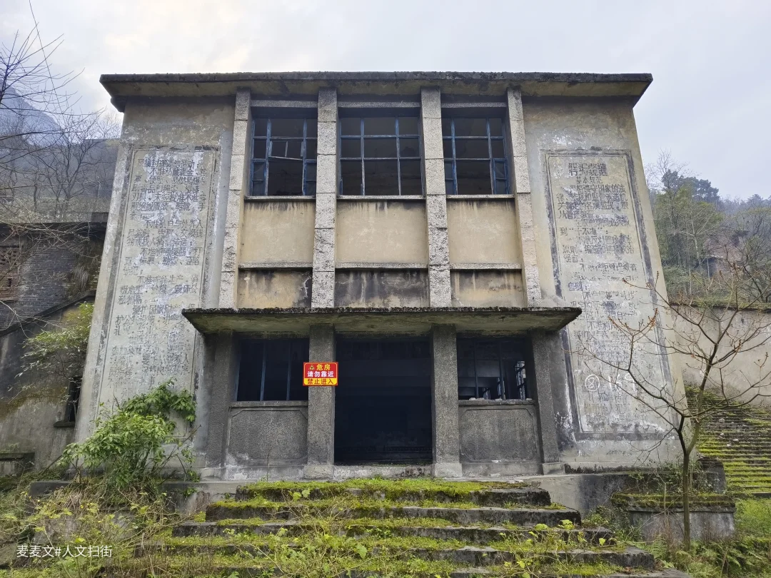 在四川省广安市华蓥市溪口镇华蓥山深处一片略显荒芜的区域里,嘉陵监狱礼堂静静地矗立着,像是一位被时光遗忘的老者。当我靠近它时,一种陈旧、凝重的气息扑面而来。礼堂的大门前杂草丛生,玻璃碎落一地,周围的围墙爬满了斑驳的藤蔓,似乎在诉说着华蓥监狱往昔的故事。
