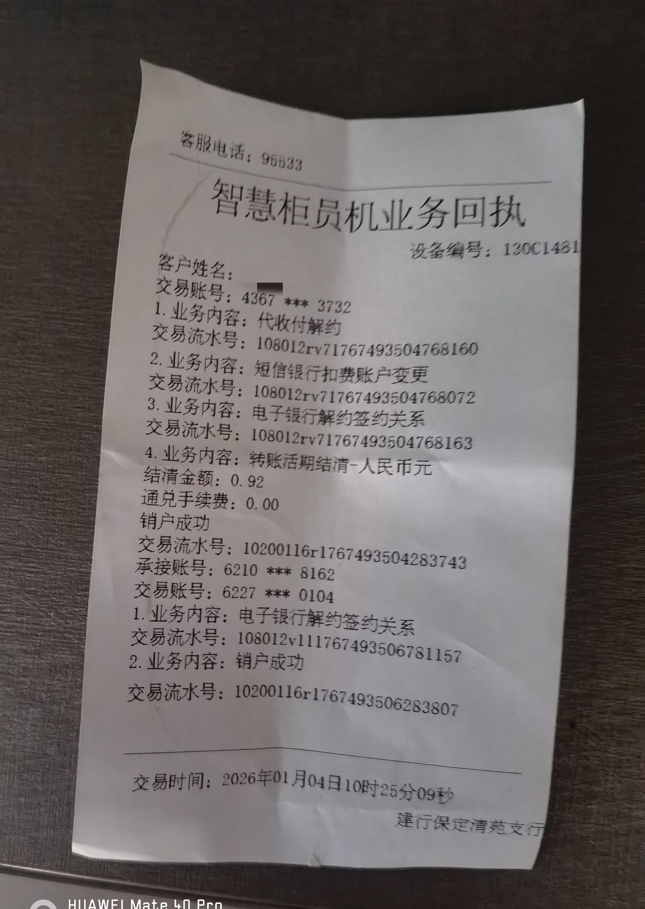 建行一张十年没动的储蓄卡,每月竟扣2元服务费,累计已扣掉几十元,我终于下定决心去销户。 到网点一问,自助机和人工窗口都办不了,必须先解绑十年前的一笔小额贷款记录,否则卡销不掉。工作人员态度倒好,耐心解释:储蓄网点没权限,得去支行信贷部门。 于是又跑一趟支行,排队近一小时,信贷部查了档案,确认那笔贷款早还清,却因系统遗留绑定仍锁着卡片。工作人员操作十几分钟,总算解开。 解绑完回到原网点,自助机上三两下就销户成功,整整折腾两趟、耗掉大半天。 办卡时几分钟就搞定,销卡却要跨部门、多网点、反复排队。银行把客户留住的门槛设得死高,解绑旧记录像在挖陈年旧账,每一步都提醒你:你的钱在他们手里,想拿回来没那么容易。 这张卡本就闲置,扣费却从未停过。销户过程暴露出的,不是技术问题,而是银行对“沉睡客户”的一种惯性吸血逻辑:宁可慢慢扣你小钱,也不愿让你轻松走人。 跑完这几趟,我只觉得累,却也清醒:卡不用了就早销,别让它在抽屉里悄悄变成银行的长期饭票。