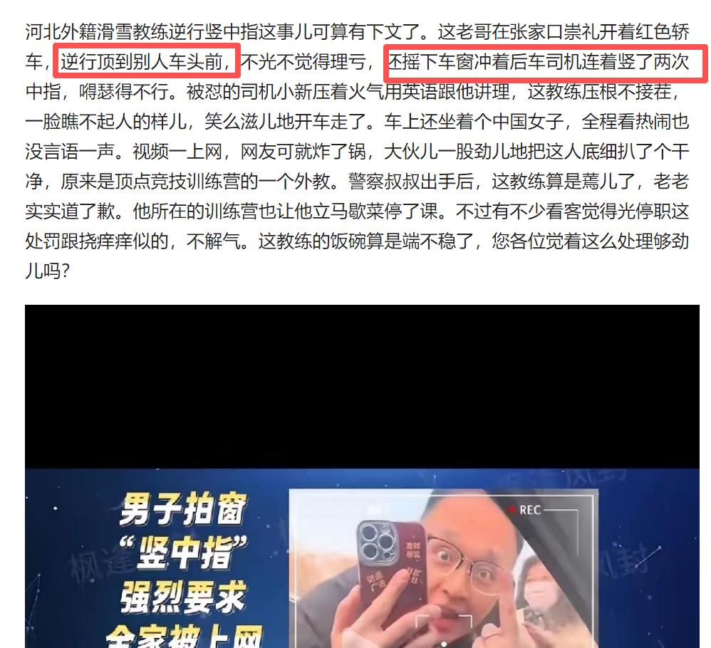 河北还出这种人 渣?自己逆行,还冲上去给人家竖中指,一脸嚣张跋扈的样子!看上去像是中国人嘛,为何又是外籍,搞不明白,请媒体把事情说清楚,不要让我们河北人背这个锅!