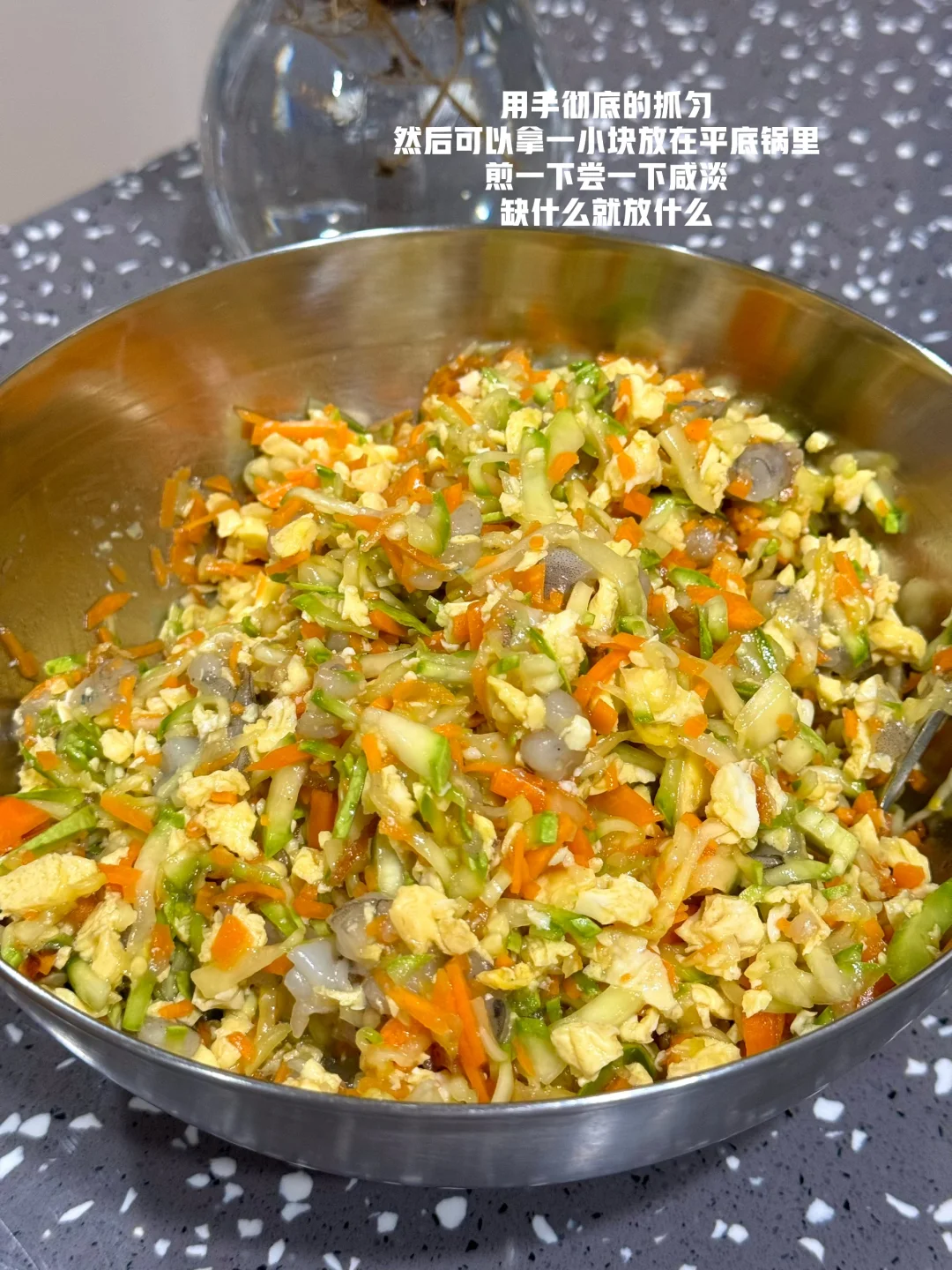 6. 用手彻底的抓匀然后可以拿一小块放在平底锅里煎一下尝一下咸淡缺什么就放什么