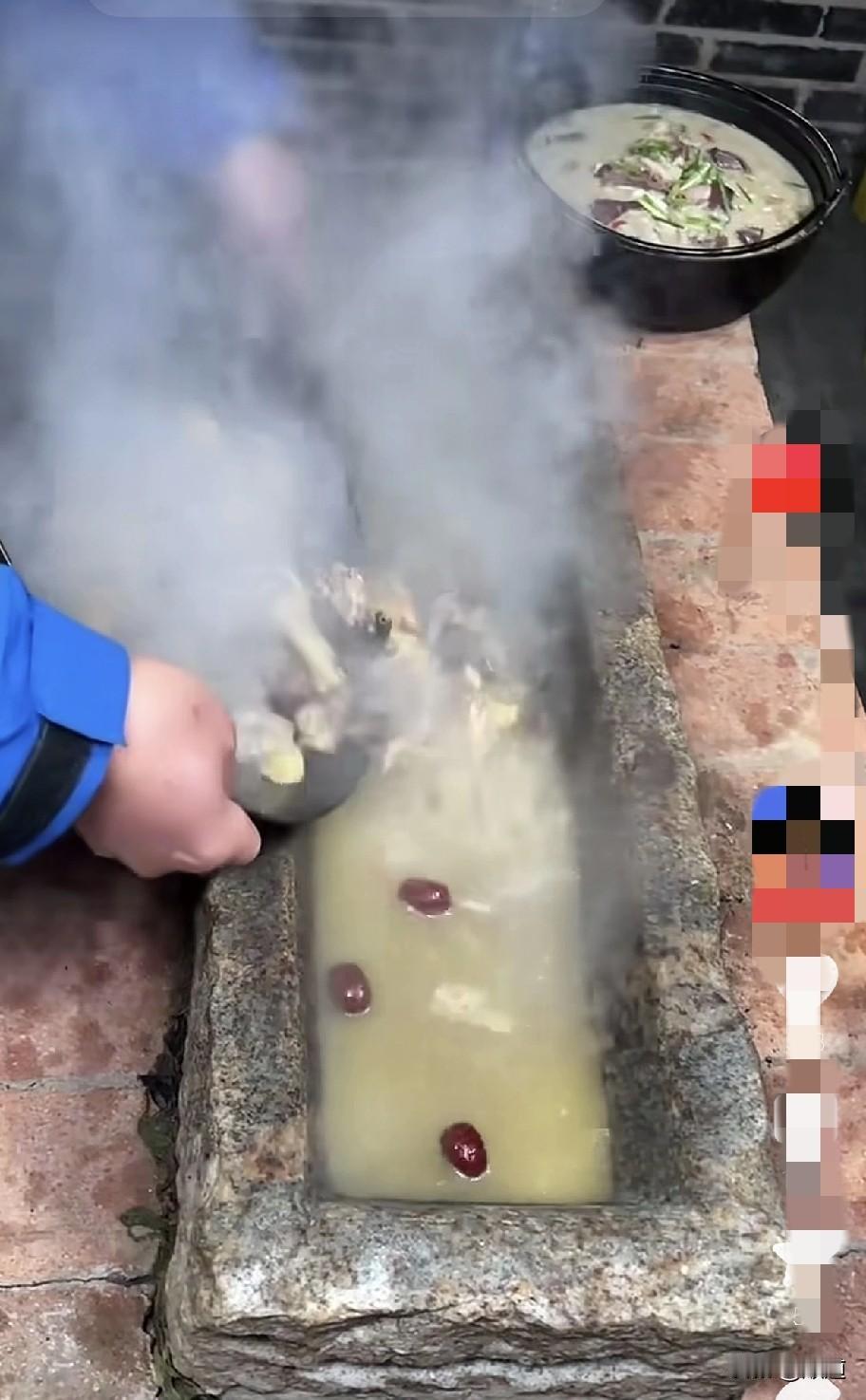 脑洞大开,真能琢磨呀。吃这槽子里的东西的人绝对都是至少90后。因为他们没见过以前农村养猪,喂猪的猪槽子。 这个石槽子和以前那个猪槽子一模一样的。 反正我是70后,这种石槽里的美食我是吃不下。 怎么寻思都吃不下。[捂脸][捂脸][捂脸]