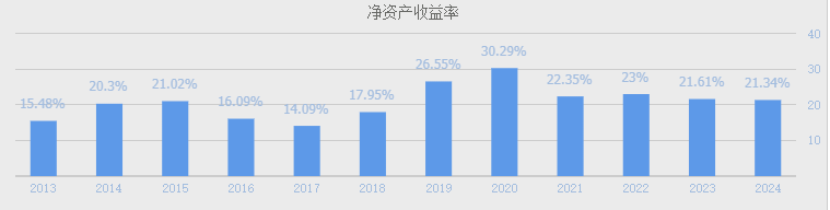 公司的盈利能力相当不错,净资产收益率大多数年份都保持在20%以上。