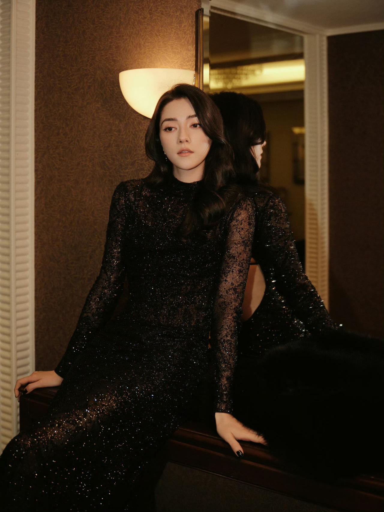 娜然一袭墨黑闪裙[奸笑] 娜然
