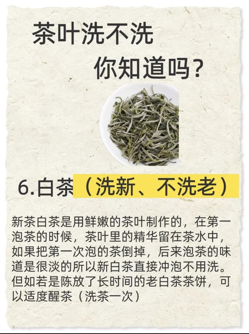 白茶:分情况而定。白毫银针、白牡丹这类鲜嫩的白茶,芽头饱满、白毫丰富,洗茶会冲走珍贵的毫香和营养,不洗为佳;而寿眉老白茶,尤其是紧压成饼的老寿眉,储存时间久、茶叶质地紧实,快速洗一遍能唤醒茶性,让后续冲泡的滋味更醇厚。