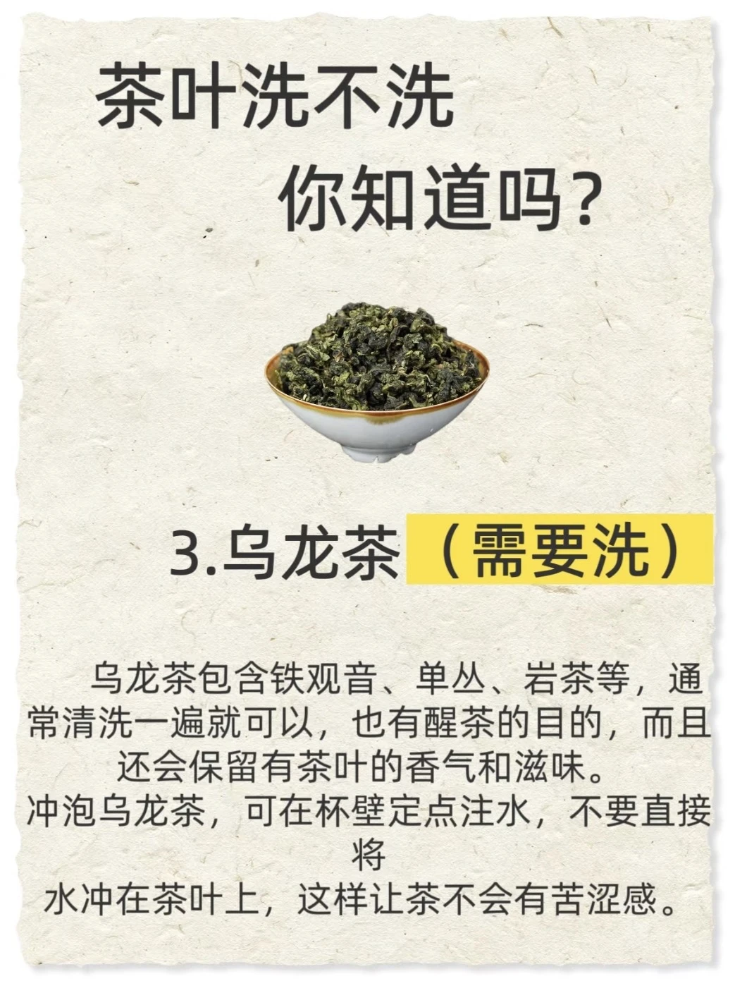 青茶(乌龙茶):建议洗茶。不管是清香型铁观音,还是浓香型岩茶、凤凰单丛,洗茶都是关键步骤。乌龙茶制作工艺繁复,干茶香气内敛,用沸水快速润洗,既能冲掉茶叶表面的浮尘,又能让叶片舒展,唤醒深藏的香气,让冲泡后的茶汤滋味更饱满。