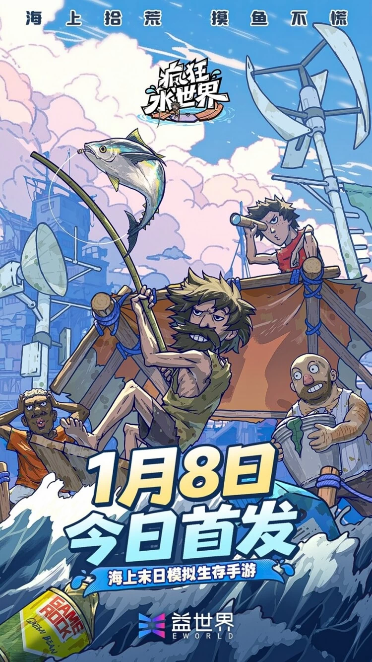 1月8日,益世界旗下新品手游《疯狂水世界》首发上线。这款以“海上末日生存”为题材的模拟生存手游,将玩家置于一个陆地消失、文明沉没的未来海上世界,扮演“老大”带领幸存者在汪洋中重建漂浮家园。