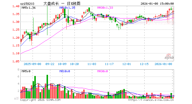 1月8日,大盘成长ETF(159203)跌0.51%,成交额49.51万元。当日份额增加100.00万份,最新份额为779.19万份,近20个交易日份额减少200.00万份。最新资产净值计算值为1065.00万元。