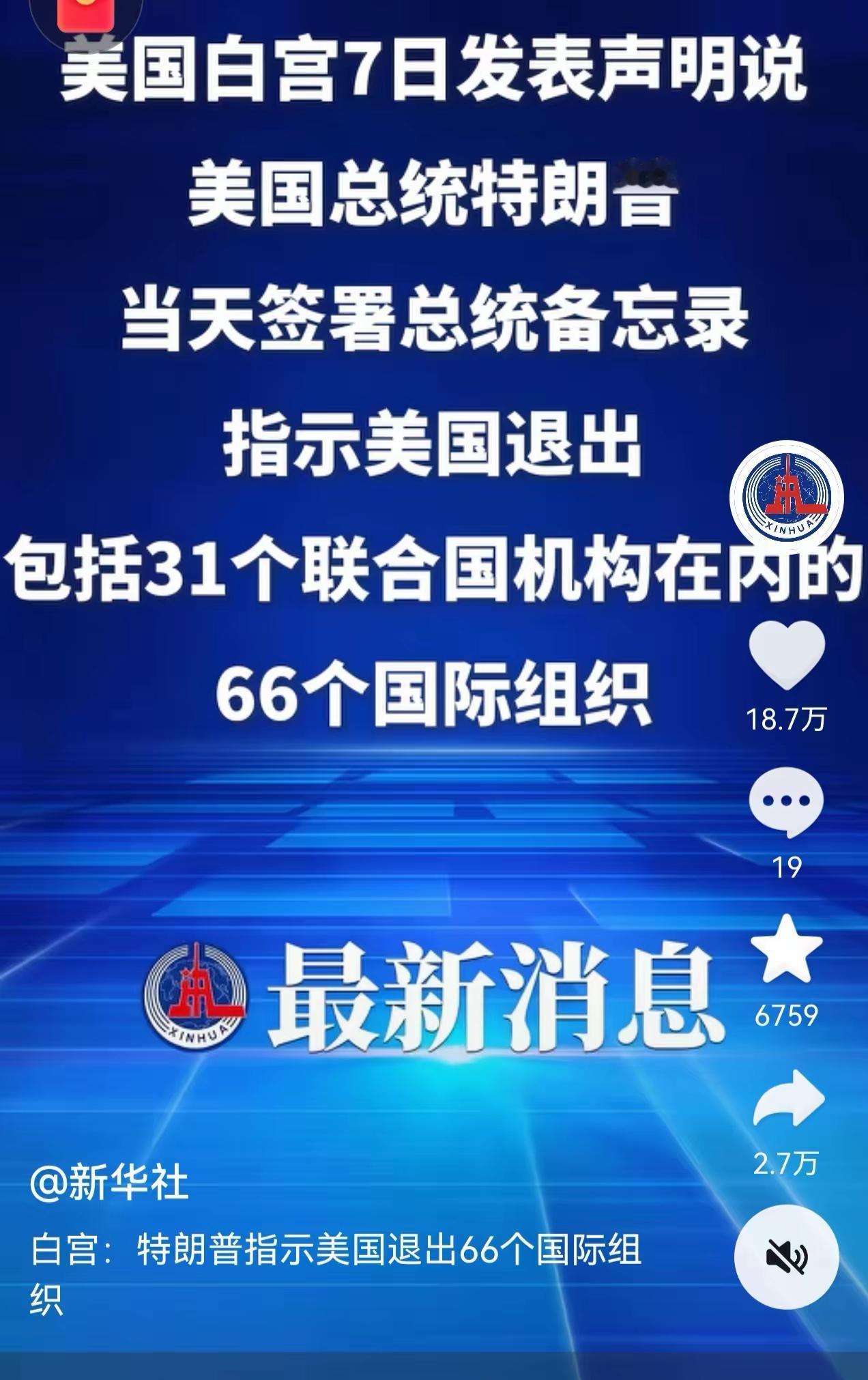 总督刚说完联合国算个屁,48小时后美国退出了66个国际组织。全世界以前呼吁防俄罗