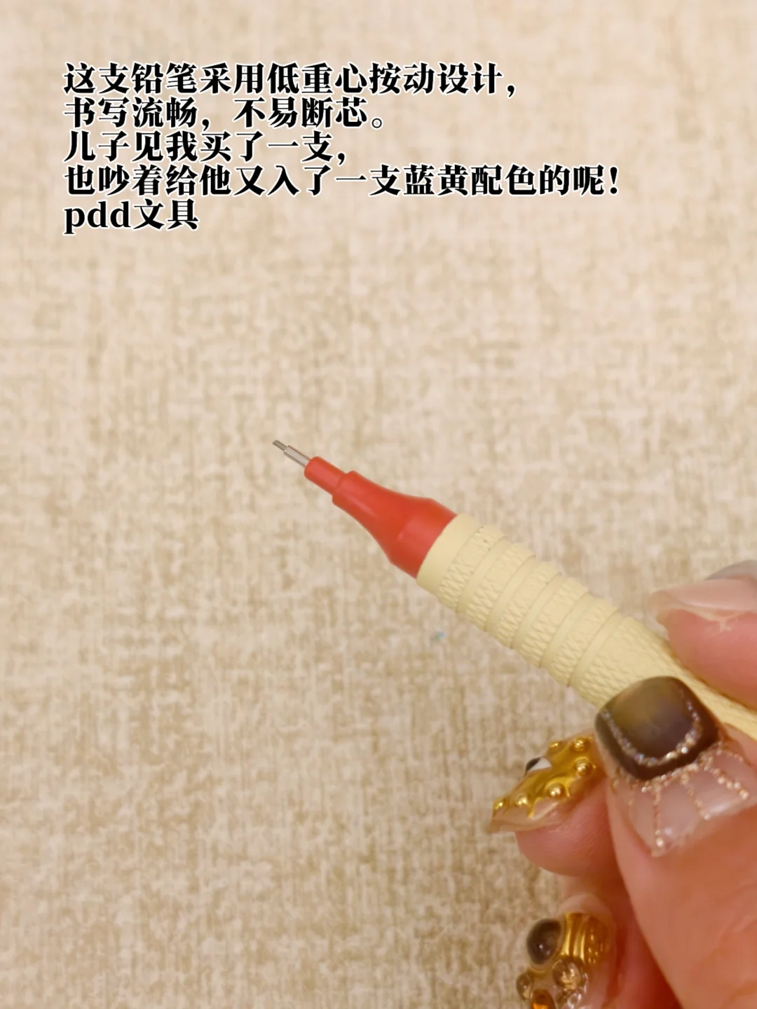 不知道是不是年纪越大就越喜欢花里胡哨的东西,按说我现在需要用到铅笔的时候真是不多了,可当我第一眼看到这红绿撞色的自动铅笔时,那可真是忍不住啊!这支铅笔采用低重心按动设计,书写流畅,不易断芯。儿子见我买了一支,也吵着给他又入了一支蓝黄配色的呢!